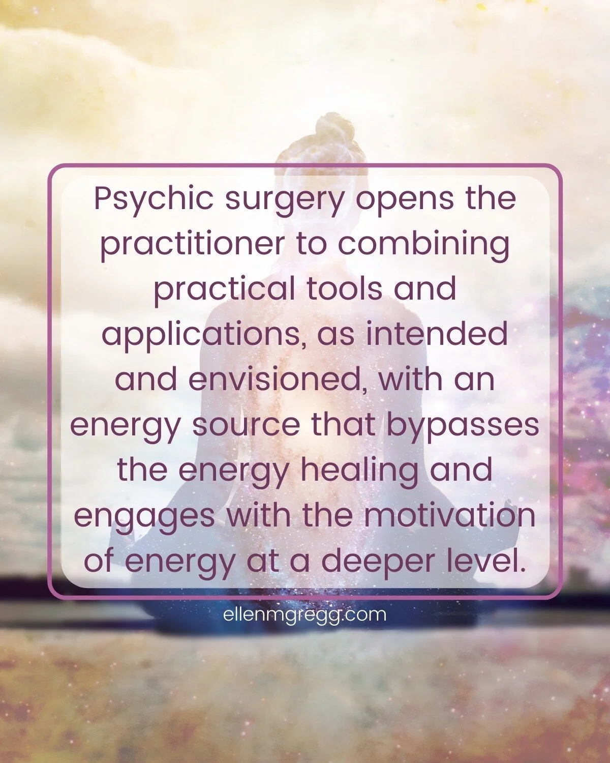 The psychic surgery bridges the great gap between the human traditional medicine and the energy of the o.e. It opens the practitioner to combining practical tools and applications, as intended and envisioned, with an energy source that bypasses the energy healing and engages with the motivation of energy at a deeper level.